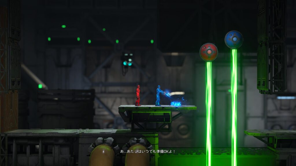 画面分割して、お互いが協力しながらギミックを攻略してステージクリアを目指す