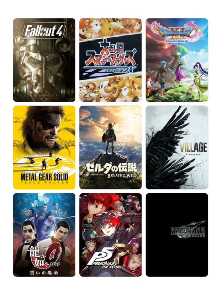 ドラクエ、FF、龍が如く、バイオハザード、メタルギア
